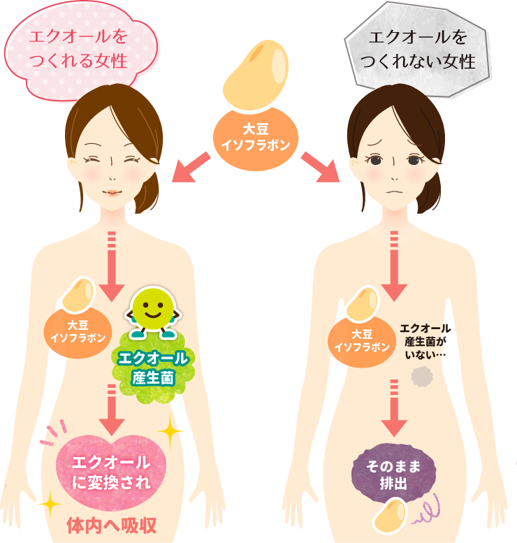 エクオールが作れる人でも、その日の腸内環境が悪いと